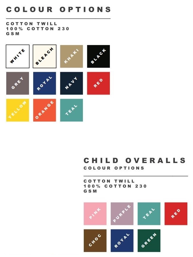 Our overalls are a beautiful slim fit design and does not look bulky when worn. We offer triple stitch in stress points to prevent tearing. We decided on a more ‘stand out from the crowd’ design with something that is not available everywhere - the two tone overall. This is such a big part of your company to look neat and professional. We offer custom designs in the sense that you can change the color and the layout of the fabric, we also offer custom embroidery and reflector tape on the overalls if needed.